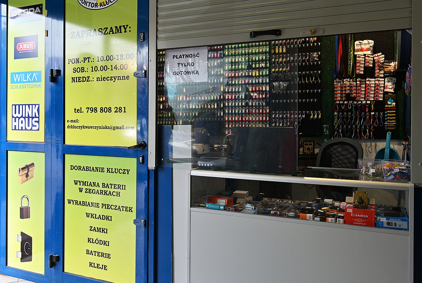 Zapraszamy do naszego klucznika w CH Krzyki we Wrocławiu, gdzie oferujemy nie tylko dorabianie kluczy, ale także inne usługi. U nas możesz dorobić klucze do mieszkań, biur, samochodów, a także zamówić pieczątki, wkładki, kłódki, baterie, czy kleje. Dodatkowo oferujemy ostrzenie narzędzi – przynieś swoje noże, nożyczki lub cążki, a my naostrzymy je dla Ciebie. Nasza oferta to kompleksowa pomoc dla mieszkańców osiedla Krzyki we Wrocławiu.
